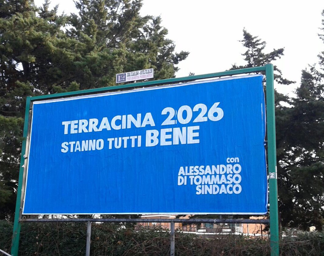 Finalmente svelato il mistero di “Stanno tutti bene”. Da questa mattina a Terracina la cartellonistica, che per giorni ha incuriosito i cittadini, ha risolto il giallo: “Terracina 2026. Stanno tutti bene con Alessandro Di Tommaso sindaco”. Sul nuovo manifesto un nome e un perché. Lo ha spiegato lo stesso candidato in un suo post pubblicato su Facebook: “’Terracina 2026. Stanno tutti bene’ è più di un progetto politico, è un percorso che parte da lontano. E’ la realtà che vogliamo costruire insieme. Più di una speranza, è la certezza che lavorando davvero al bene comune con onestà, serietà e competenza potremo realizzare un presente e un futuro migliore per questa Terracina in cui potremmo dire di stare tutti bene. E’ una promessa, è il nostro impegno”.