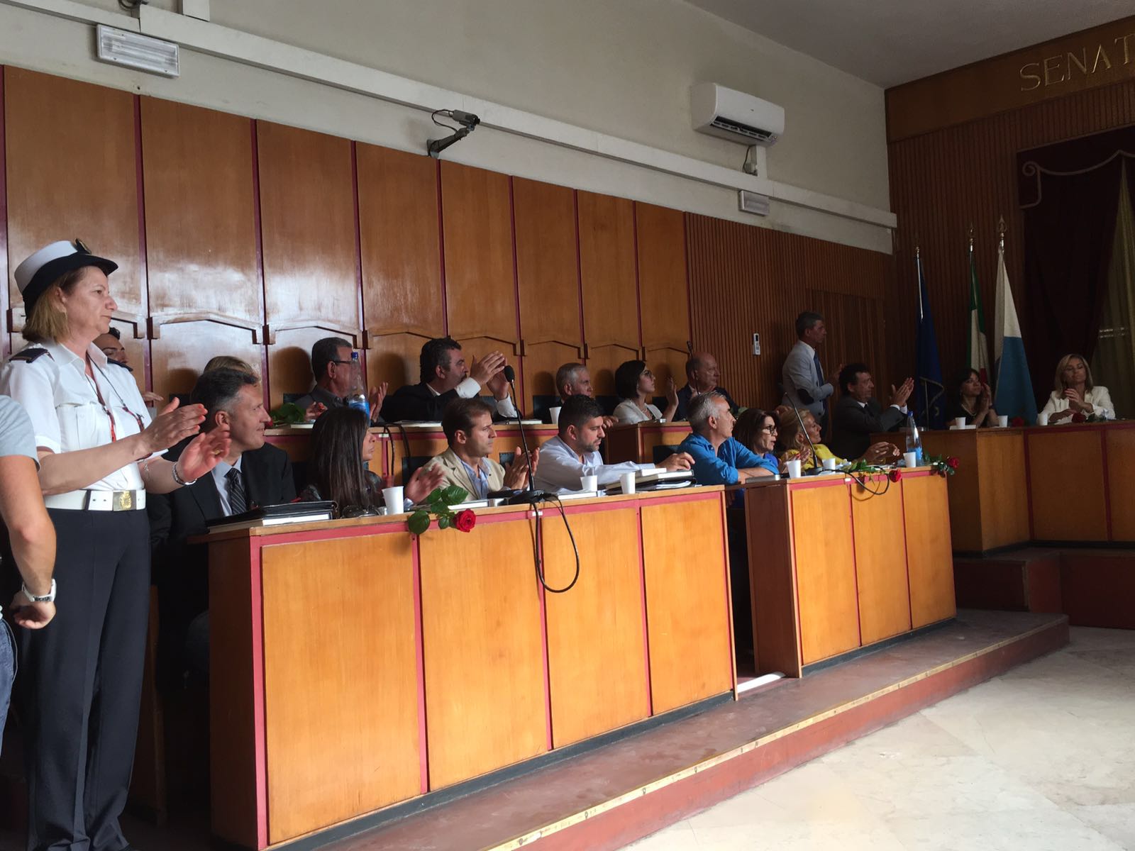 Dopo l’esame delle condizioni di eleggibilità e compatibilità degli eletti, i lavori di questo primo Consiglio del dopo voto sono iniziati con le elezioni di Gianfranco Sciscione alla presidenza e di Giuseppe D’Andrea alla vice presidenza. Sciscione, candidato dalla maggioranza ed eletto con 18 voti contro i sei assegnati a Ilaria Marangoni, si è detto molto emozionato per il ruolo assegnatogli: “Sarò il presidente di tutti, a garanzia di tutto il Consiglio”. D’Andrea, espressione della minoranza, eletto all’unanimità, si è rivolto alla maggioranza chiedendo un maggior coinvolgimento presso l’ufficio di presidenza e in qualità di consigliere presso le commissioni. Ha chiesto anche l’indicazione di un luogo per la consultazione dei documenti da esaminare, per tempo e non all’ultimo minuto, in vista di consigli e commissioni e al sindaco di rendere partecipe l’opposizione a questioni importanti, come la riorganizzazione della macchina amministrativa. Le proposte di D’Andrea sono state fatte subito proprie dal presidente Sciscione.