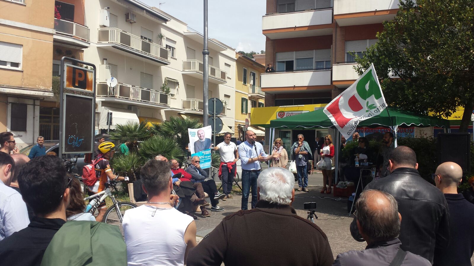 Il porto e il centro urbano dove gravitano la maggior parte delle attività commerciali, luogo di socialità. La foto attuale non piace a Di Tommaso perché sciupata dall’incuria, dall’abbandono, dalle brutture nate come soluzioni tampone e diventate definitive. “Non dobbiamo e non possiamo abituarci alle brutture”, ha detto Di Tommaso riferendosi ad esempio al guard rail a protezione del canale installato 15 anni fa dopo che un’automobile c’era finita dentro. La foto va restaurata, il quartiere riqualificato a partire dal porto, dall’area del Molo pensando ad un ricongiungimento delle due pinete, dal piazzale Stella Polare dove mettere a sistema una gestione che tenga conto dell’esigenza di nuove soste ma anche dei pescatori che non hanno più spazio neanche per allungare le reti. Si è detto emozionato Di Tommaso a parlare alla gente della Marina, a parlare dei pescatori come suo nonno. “Io non sono un candidato con la valigia in mano”, ha detto il giovane aspirante sindaco che a Terracina ha scelto di rimanere. “Mi troverete anche domani, mi rincontrerete per strada”, come a significare che l’impegno promesso non potrà essere tradito. Come non può essere tradita, secondo Di Tommaso, la storia dei luoghi e dell’importanza che hanno assunto nell’antichità in termini di scambi sviluppatisi lungo l’Appia per convergere al porto di Terracina. E non potranno essere tradite neanche le aspettative di tanti giovani terracinesi che come lui hanno scelto di restare in città, né dei commercianti del Mercato della Marina che sono rimasti attivi nonostante il degrado in cui versa la struttura. Il progetto della riqualificazione del quartiere proposta da Di Tommaso include anche il mercato e iniziative che possano creare una connessione tra la Marina e il centro storico alto perché a Terracina ci si senta cittadini di una stessa città, “senza differenze e soprattutto senza che nessuno resti indietro”.