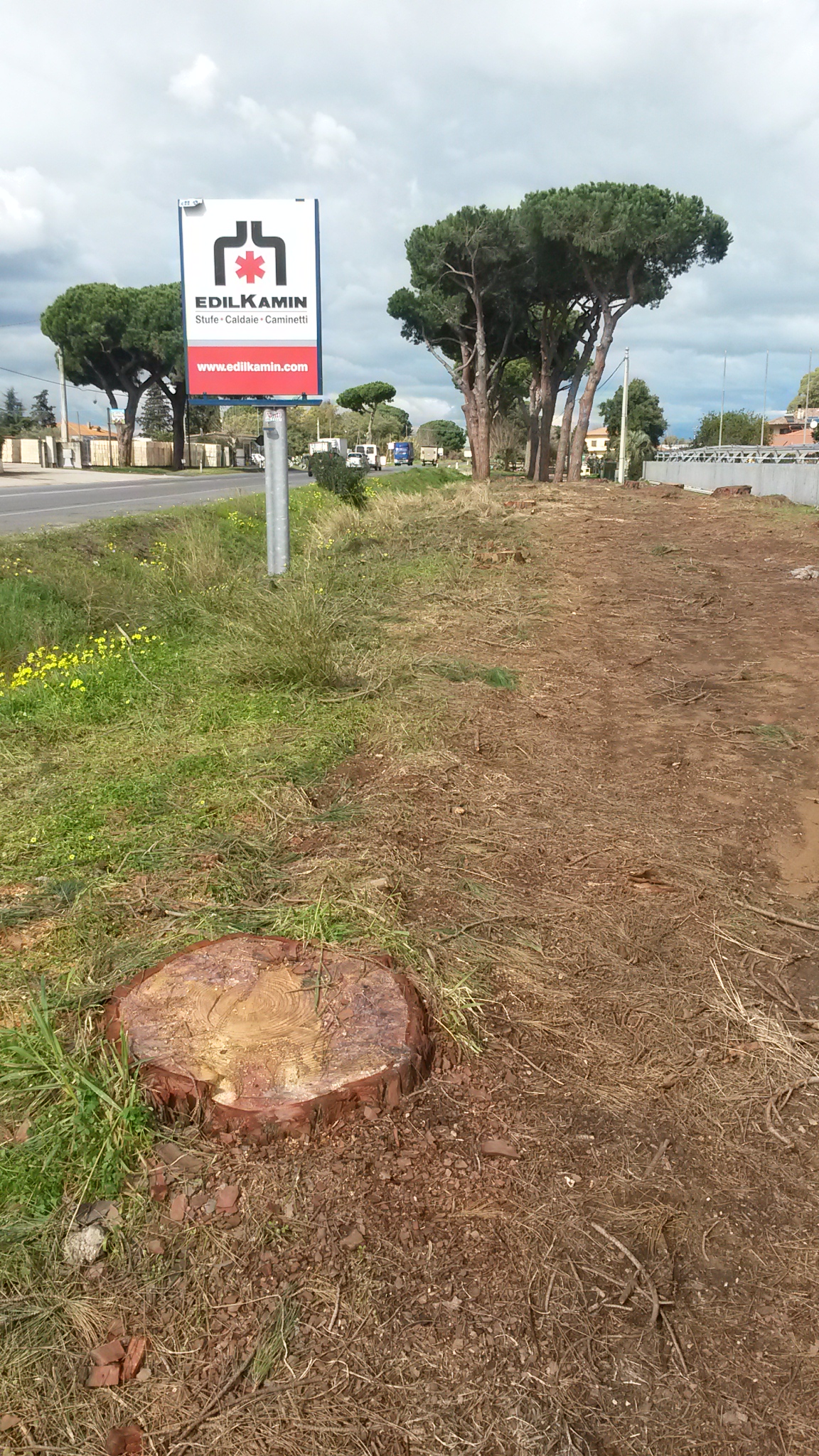 L’Ente gestore delle fasce frangivento, il Consorzio della Bonifica di Latina, proprio in quel tratto aveva appena terminato la messa in sicurezza dell’alberatura, mediante un intervento di potatura e taglio di qualche esemplare di pino ritenuto poco stabile, ma probabilmente l’intervento non è stato ritenuto sufficiente dai frontisti, che hanno pensato di incaricare una Ditta e tagliare tutto a raso.