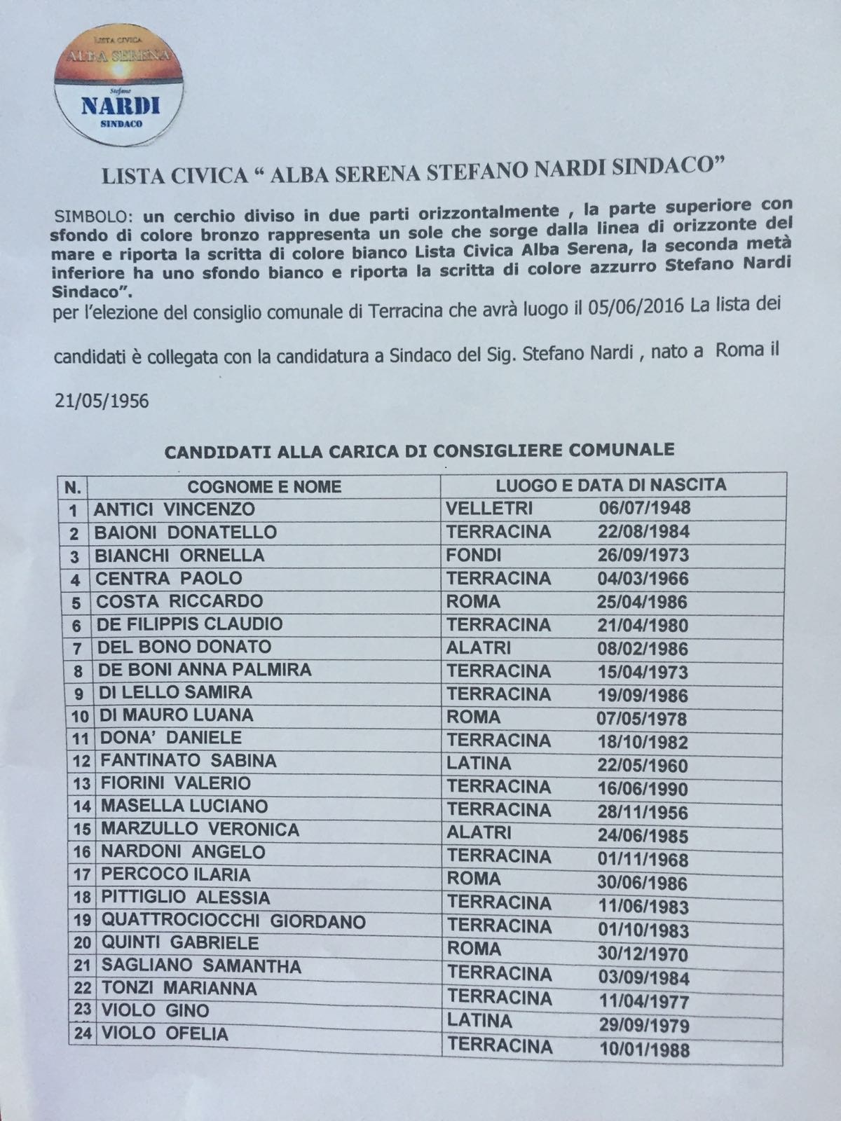 Erano in tanti a Terracina a scommettere che alla fine Stefano Nardi non si sarebbe ricandidato alla carica di sindaco. Un “bluff” hanno sostenuto in molti, anche dopo il suo annuncio del 12 marzo scorso fatto attraverso due interviste rilasciate a LatinaCorriere.it. e Latina Editoriale Oggi. E invece era tutto vero: ha depositato nomi, simbolo e firme. Nardi punta a tornare a Palazzo con una civica “Alba Serena” anziché due (ma infondo poco conta per Nardi, perché ha detto che l’appuntamento di giugno si chiama elezione diretta del sindaco e che due liste erano anche troppe), denunciando il malgoverno che si è insediato in Comune durante la sua assenza. “Ve lo do io Gomorra” aveva tuonato e così sarà.