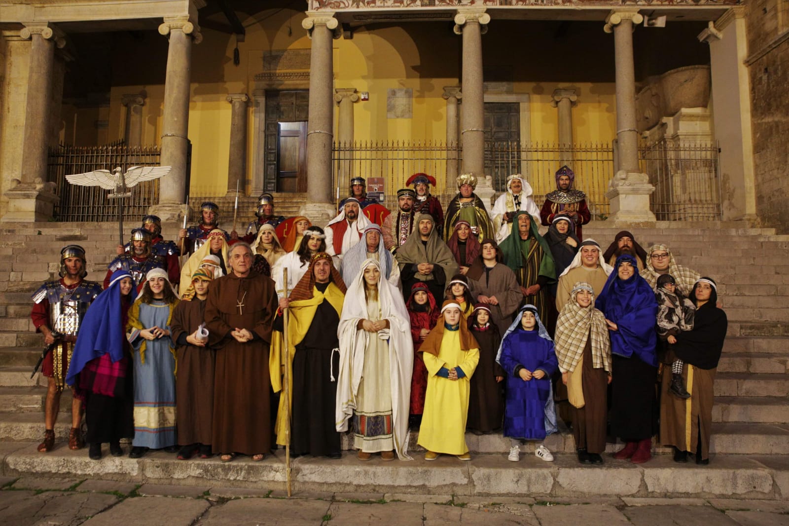 Mimmo De Rosa, nelle vesti di San Francesco (ricordiamolo sempre autore del primo presepe vivente della storia nel 1223), spiegherà al pubblico presente cosa stanno osservando nel vedere i quadri (dove saranno presenti figuranti in costume), mentre delle voci fuori campo riprodurranno i dialoghi; si passerà dal quadro della “Annunciazione” a Maria, all’angelo che parla a Giuseppe, dalla richiesta di perdono al proclama dell’imperatore fino al viaggio di Giuseppe e Maria verso la grotta a Betlemme, dopo la nascita ci sarà l’adorazione del bambinello.Replica e conclusione con l’arrivo dei Magi, dopo il loro incontro con Re Erode, il 6 gennaio sempre in Piazza municipio.