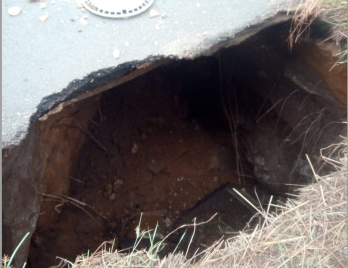 Lo smottamento aveva provocato l’apertura di una cavità sul piano viabile in corrispondenza di un attraversamento idraulico, posto al di sotto della pavimentazione.