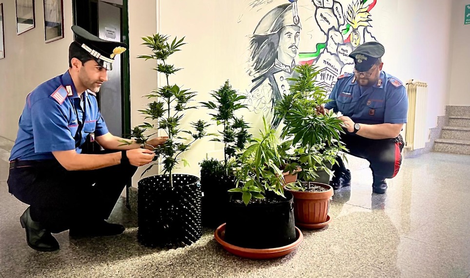 L’uomo è stato sorpreso dai carabinieri mentre innaffiava le sue piantine di hashish, sei nello specifico e aventi un’altezza tra i 40 e gli 80 centimetri, poste in vasi all’interno del giardino condominiale.