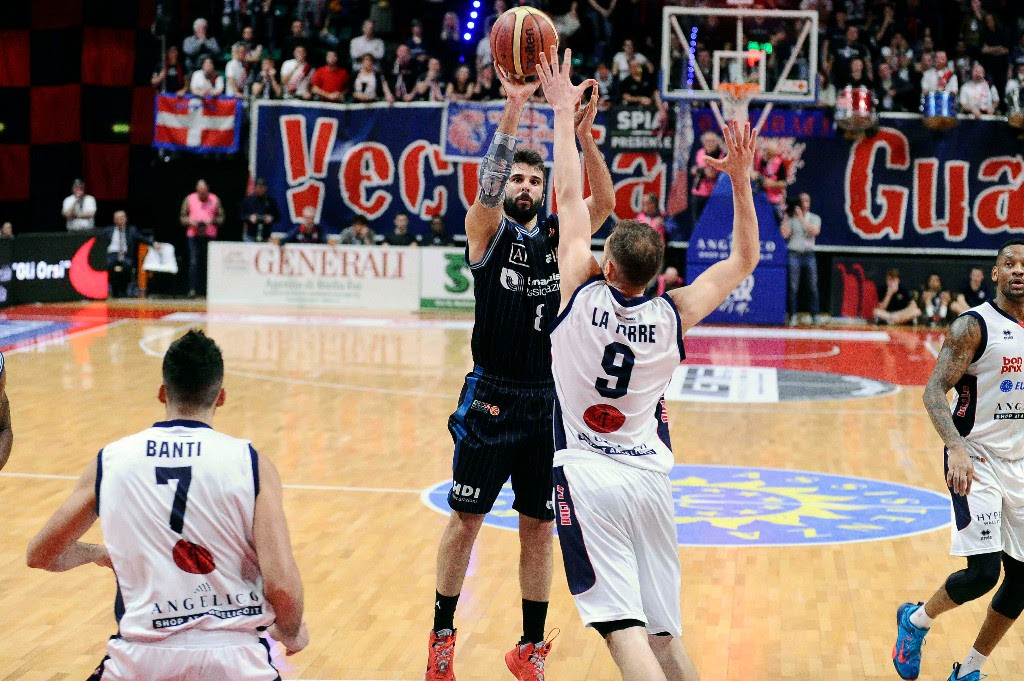 ANGELICO BIELLA vs BENACQUISTA ASSICURAZIONI LATINA BASKET 74-71 (16-22, 34-38, 50-49, 74-71)