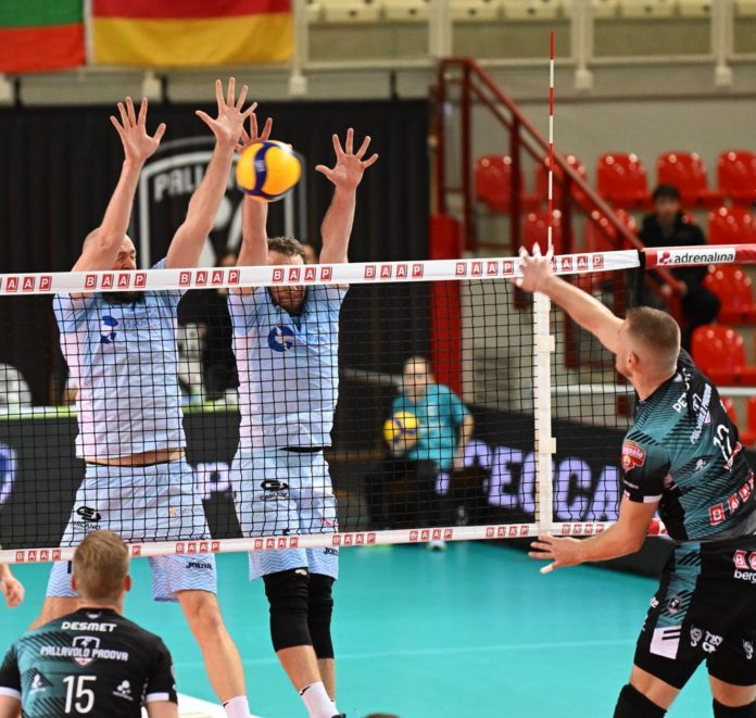 Cisterna prende subito il largo nell’inizio del primo set con Baranowicz che smista palle veloci per tutti i suoi compagni, 4-8. Padova prova a riportarsi sotto con Petkovic e arriva a meno due dagli avversari, 7-9. Kaliberda si riprende il più tre murando Petkovic, 13-16. Azione lunghissima chiusa da Dirlic, vero mattatore del primo set, 15-19. Finale di set sale in cattedra Sedlaceck che mette a segno tre punti preziosi con diagonali imprendibili per i patavini, otto palle set per i bianco blu, 16-24. Asparuhov spara forte a rete, primo set per la Top Volley, 17-25.