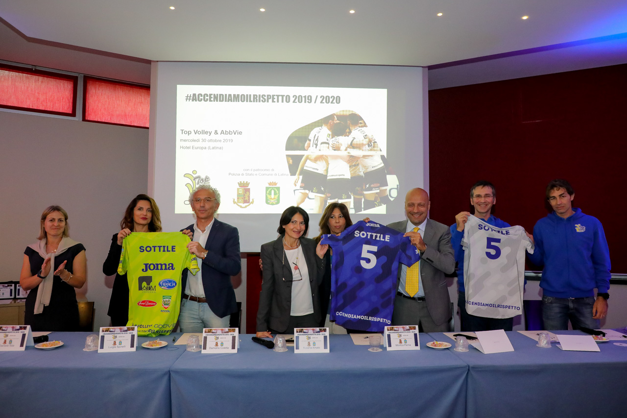 Mercoledì 30 ottobre alle ore 11 presso l’Hotel Europa si è tenuta la conferenza stampa del progetto #Accendiamoilrispetto, che riparte per il quinto anno consecutivo, in cui la Top volley in collaborazione con Abbvie e con il patrocinio della Polizia di Stato e del comune di Latina, torna nelle scuole per parlare agli studenti e ai loro insegnanti di temi particolarmente delicati quali: il bullismo, il cyberbullismo, il rispetto dell’ambiente e l’uso consapevole dell’energia. In poche parole educazione e rispetto delle regole a 360°. L’evento è stato moderato da Giuseppe Baratta, ed erano presenti gli studenti dell’istituto Einaudi-Mattei di Latina e dell’istituto Marconi, che hanno potuto ascoltare le parole del capo di Gabinetto della prefettura di Latina Monica Perna che ha portato i saluti del prefetto di Latina Maria Rosa Trio, del questore di Latina Rosaria Amato, del sindaco di Latina Damiano Coletta, del coach della Top volley Lorenzo Tubertini, del capitano della Top volley Daniele Sottile, del direttore sportivo della Top volley Candido Grande, del presidente della Top volley Gianrio Falivene, del direttore dello stabilimento AbbVie di Campoverde di Aprilia Daniela Toia, del sostituto procuratore della Repubblica presso il tribunale di Roma Luigia Spinelli.
