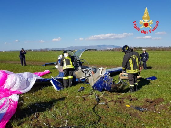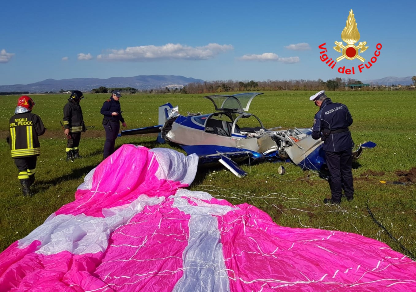 E’ di Velletri la coppia, marito e moglie, precipitata oggi su un campo di via Carano, tra Cisterna e Aprilia, a bordo di un ultraleggero. Una tragedia sfiorata, grazie alla manovra di atterraggio di emergenza eseguita dal pilota, l’uomo di 65 anni.