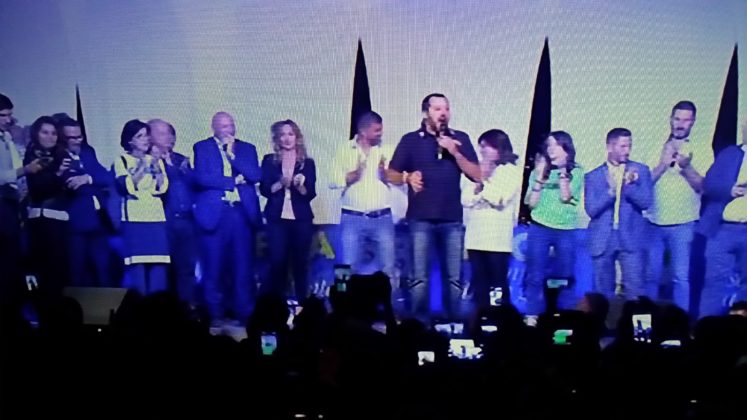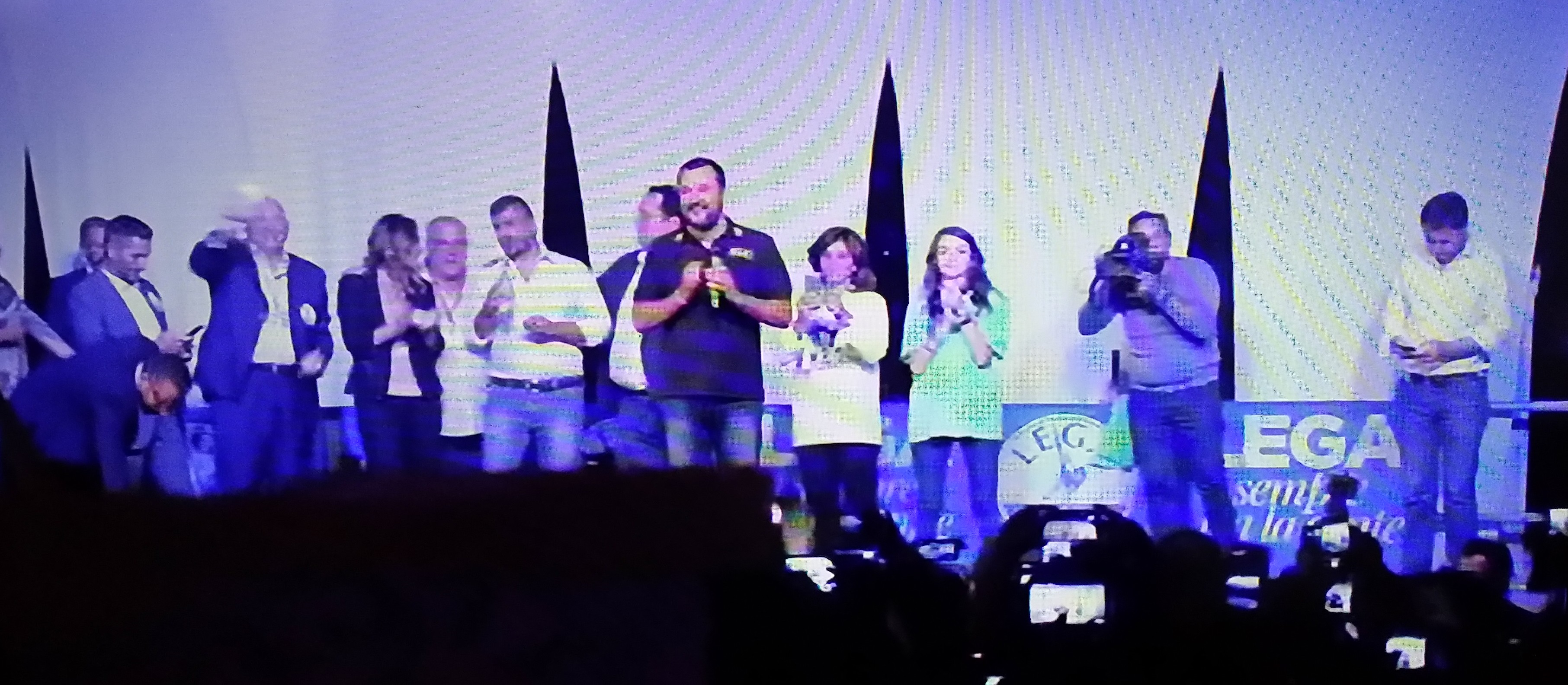 A seguire il raduno regionale della Lega un centinaio di giornalisti, anche di testate estere. Un evento che oltre a calamitare migliaia di militanti della Lega, primo partito alle ultime elezioni in tutte le province del Lazio, sembra aver dettato l’agenda per i futuri impegni politici a cominciare dalle europee a cui il Carroccio parteciperà con i migliori “pezzi”, uomini e donne, per un’Italia libera, in cui far crescere i propri figli. Ma a Latina già si pensa anche alle prossime amministrative. Lo ha detto in chiusura di serata Matteo Adinolfi, consigliere comunale di Latina e coordinatore provinciale della Lega: “Alle prossime comunali ci organizzeremo in maniera autonoma, con liste della Lega, e non andremo a rimorchio di nessuno”. E’ presto per parlarne, anche se Zicchieri in apertura di serata ha chiesto le dimissioni del sindaco di Latina “impegnato a cambiare nomi alle strade, alle piazze e ai parchi, invece di risolvere i problemi della città”. “Anche a Latina – ha detto – serve la rivoluzione del buonsenso, cominciando a fare ciò che è necessario”.
