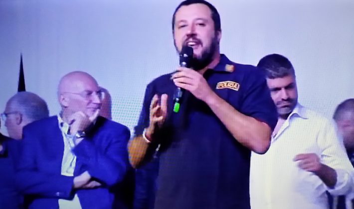 Il vice premier Salvini, ministro dell’Interno, ha voluto omaggiare la Polizia di Stato indossando una maglietta del corpo nel giorno di San Michele Arcangelo, protettore della Polizia. Un omaggio che vale per tutte le forze dell’ordine, impegnate sul campo tutti i giorni per servire il Paese e garantire sicurezza ai cittadini: “Quando vado in visita presso i penitenziari ci vado soprattutto per essere vicino alla polizia penitenziaria non per garantire un televisore ai detenuti”. Matteo Salvini, che ha parlato per un’ora alla festa regionale del partito, facendo dimenticare al pubblico il ritardo con cui si è presentato all’appuntamento, ha difeso le linee del Governo dall’immigrazione alla manovra finanziaria, l’abolizione della legge Fornero e le politiche sulla famiglia: “La prima cosa che ho fatto da ministro dell’Interno è stato quello di abolire dal sito istituzionale la dicitura genitore 1 e genitore 2, perché ogni bambino che viene al mondo ha diritto di avere un padre e una madre, un nonno e una nonna, non un genitore 1 e un genitore 2”.