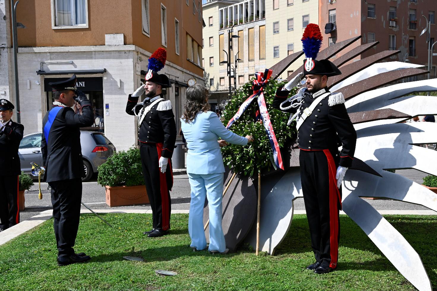 Questa mattina, alle ore 10:00, a Latina, in piazza caduti di Nassiriya, il Prefetto di Latina, Vittoria Ciaramella, accompagnato dal Comandante Provinciale dei Carabinieri, Colonnello Christian Angelillo, ha depositato una corona di fiori al monumento “il Carabiniere”, benedetta dal Cappellano militare, Don Eugenio Campini, del 2° Reggimento Allievi Marescialli e Brigadieri dei Carabinieri di Velletri.