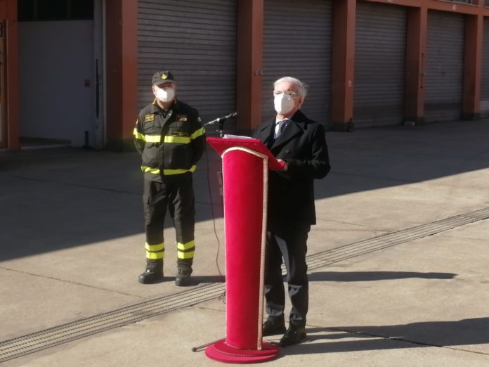 Il Prefetto Falco ha salutato il personale di servizio schierato nel piazzale della caserma, dove erano esposti anche i mezzi e le dotazioni dei vari reparti del Corpo Nazionale dei Vigili del Fuoco. Sono seguiti i due discorsi del Comandante Provinciale e del Prefetto, omaggiato al termine di un libro sui Vigili del Fuoco, che stando ai numeri illustrati da Smaniotto, dicono come gli interventi non abbiano subito una riduzione malgrado la pandemia. Un esempio: oltre 400 interventi a gennaio 2020, oltre 400 interventi a gennaio 2021. Resta il problema annoso dell’organico e l’esigenza di un turn over per sostituire il personale, specie quello amministrativo, verso il pensionamento.