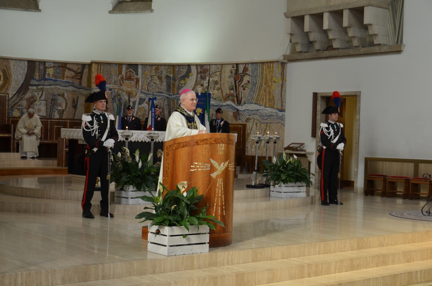 Oggi a Latina la ricorrenza della Virgo Fidelis, patrona dell’Arma dei carabinieri, è stata celebrata nella cattedrale San Marco. Ad officiare la cerimonia è stato il vescovo, monsignor Mariano Crociata, alla presenza delle autorità civili e militari locali, del Comandante Provinciale di Latina, colonnello Gabriele Vitagliano, e di una consistente rappresentanza di Carabinieri in servizio e in congedo dell’intera provincia nonché di studenti delle classi elementari e medie di Latina.