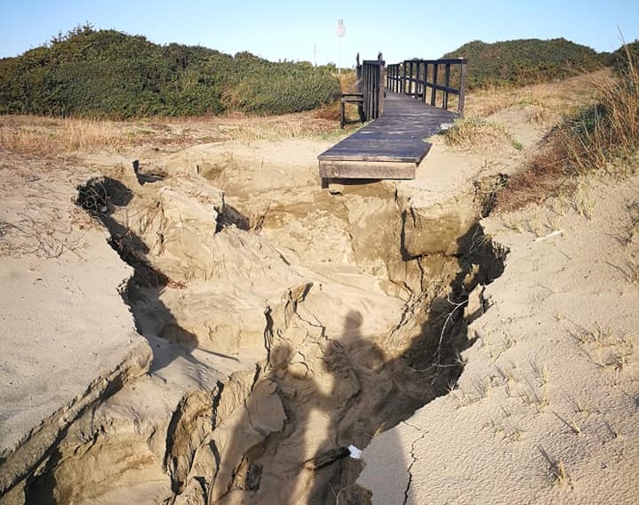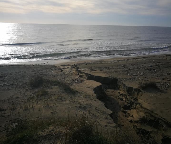Voragine nella spiaggia vicino a Rio Martino. A postare le foto questa mattina su Facebook è stato il consigliere comunale di opposizione Matteo Coluzzi.